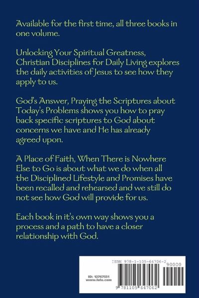 Unlocking Your Spiritual Greatness, God's Answer and a Place of Faith, all in one volume. 600 pages of practical discipleship training.
