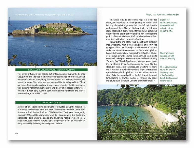 A guidebook to 25 inland and coastal walks on the islands of Guernsey, Alderney, Sark and Herm. Exploring the beautiful scenery of the Channel Islands, the walks are suitable for beginner and experienced walkers alike. Walks range in length from 5 to 13km (3-8 miles) and some of the walks can be linked together to form 61km (38 miles) of the Channel Island Way. * 1:15,000 States of Guernsey maps included for each walk * GPX files available to download * Detailed information on refreshments and public transport for each walk * Easy access from St Peter Port * Highlights include St Sampson and Table des Pions