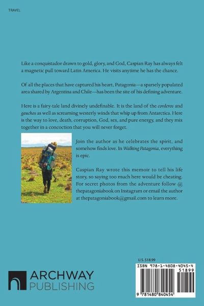 Like a conquistador drawn to gold, glory, and God, Caspian Ray has always felt a magnetic pull toward Latin America. He visits anytime he has the chance. Of all the places that have captured his heart, Patagonia—a sparsely populated area shared by Argentina and Chile—has been the site of his defining adventure. Here is a fairy-tale land divinely undefinable. It is the land of the corderos and gauchos as well as screaming westerly winds that whip up from Antarctica. Here is the way to love, death, corruption, God, sex, and pure energy, and they mix together in a concoction that you will never forget. Join the author as he celebrates the spirit, and somehow finds love. In Walking Patagonia, everything is epic.