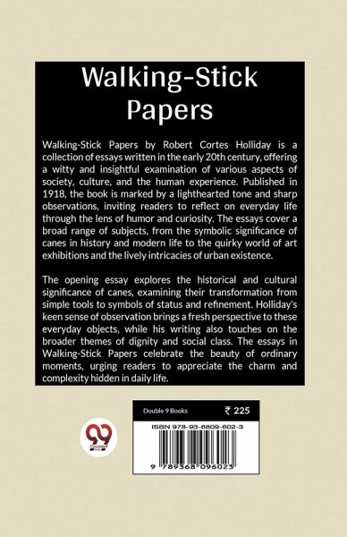 Walking-Stick Papers by Robert Cortes Holliday is a collection of essays written in the early 20th century, offering a witty and insightful examination of various aspects of society, culture, and the human experience. Published in 1918, the book is marked by a lighthearted tone and sharp observations, inviting readers to reflect on everyday life through the lens of humor and curiosity. The essays cover a broad range of subjects, from the symbolic significance of canes in history and modern life to the quirky world of art exhibitions and the lively intricacies of urban existence. The opening essay explores the historical and cultural significance of canes, examining their transformation from simple tools to symbols of status and refinement. Holliday's keen sense of observation brings a fresh perspective to these everyday objects, while his writing also touches on the broader themes of dignity and social class. The essays in Walking-Stick Papers celebrate the beauty of ordinary moments, urging readers to appreciate the charm and complexity hidden in daily life.