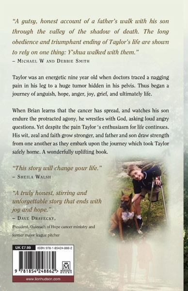 'God is in control. Cancer isn't. If he chooses to, God still might intervene. But even if he doesn't ... you are safe. And you will never be alone.'Taylor was an energetic nine year old when doctors traced a nagging pain in his leg to a huge tumour hidden in his pelvis. Thus began a journey of anguish, hope, anger, joy, grief, and ultimately life. When Brian learns that the cancer has spread, and watches his son endure the protracted agony, he wrestles with God, asking loud angry questions. Yet despite the pain Taylor 's enthusiasm for life continues. His wit, zeal and faith grow stronger, and father and son draw strength from one another as they embark upon the journey which took Taylor safely home. A wonderfully uplifting book.