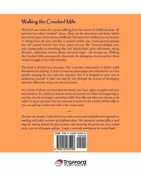 Walking the Crooked Mile was written for anyone suffering from the trauma of childhood abuse. All survivors have their "crooked" places. These are the distortions and faulty beliefs that are the legacy of an abusive childhood. No matter how skilled you may become at hiding from the pain and fear it remains within you. Unrecognized perhaps but still carried forward into every aspect of your life. Unacknowledged your pain masquerades as something else, bad relationships, poor self-esteem, eating disorders, addictions, chronic illness, pervasive anger... the list goes on. Walking the Crooked Mile systematically dismantles the damaging misconceptions abuse victims struggle to live with everyday. The book is divided into two parts. Part I provides information to build a solid foundation for healing. A series of exercises personalizes this information so it has specific meaning for you and your situation. Part II is designed to assist you in reclaiming yourself. It takes you step by step through the process of developing and then effectively using your personal power. As a victim of abuse you have been devalued, your basic rights trampled and your heart broken. As a child you had no choice or control over what was happening to you but you are no longer a powerless child. Your life and what you choose to do with it is up to you now. You can continue to settle for the crumbs off the table or you can pull up a chair and order a ten course meal.