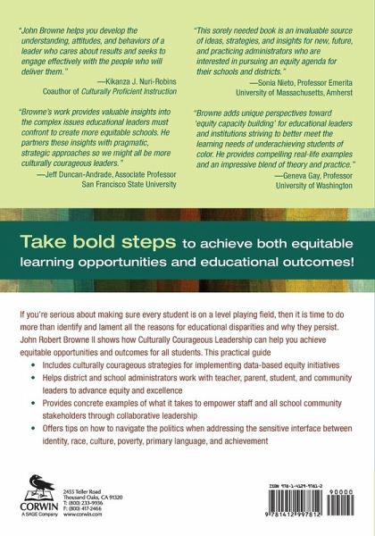 Take bold steps to achieve both equitable learning opportunities and educational outcomes! If you're serious about making sure students of all backgrounds are on a level playing field, then it is time to start walking the equity talk. John Robert Browne II shows how Culturally Courageous Leadership can help you: Develop realistic, data-based plans for putting equity initiatives into action Work with teacher, parent, student, and community leaders to advance equity and excellence Empower staff and stakeholders through collaborative leadership Navigate the politics when addressing identity, race, culture, language, and poverty issues