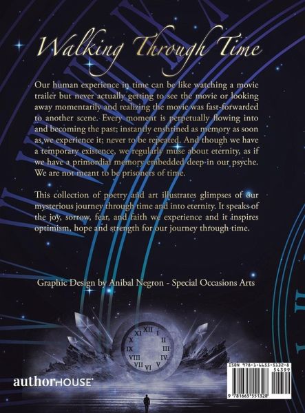 Our human experience in time can be like watching a movie trailer but never actually getting to see the movie or looking away momentarily and realizing the movie was fast-forwarded to another scene. Every moment is perpetually flowing into and becoming the past; instantly enshrined as memory as soon as we experience it; never to be repeated. And though we have a temporary existence, we regularly muse about eternity, as if we have a primordial memory embedded deep in our psyche. We, somehow, sense that we are not meant to be prisoners of time. This collection of poetry and art illustrates glimpses of our mysterious journey through time and into eternity. It speaks of the joy, the sorrow, the fear and the faith we experience and it inspires optimism, hope and strength for our journey through time.