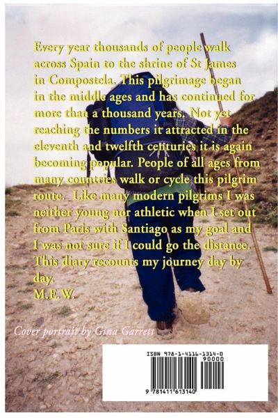 Every year thousands of people walk across Spain to the shrine of St James in Santiago de Compostela. This pilgrimage began in the Middle Ages and has continued for more than a thousand years. People of all ages from many countries walk or cycle this pilgrim route. Like many modern pilgrims the author was neither young nor athletic when she set out from Paris with Santiago as her goal. She was not sure if she could go the distance. This diary recounts the 1800 kilometre journey day by day.