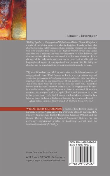 Walking Together: A Congregational Reflection on Biblical Church Discipline is a study of the biblical concept of church discipline. It seeks to show that church discipline, rightly understood, is a ministry of mercy and grace that will bless churches that return to it. Walking Together reveals that church discipline was a ministry that was very important to earlier believers, and that the modern church has abandoned it to her own detriment. It is a clarion call for individuals and churches to come back to this vital but long-neglected aspect of congregational and personal life. By doing so, churches can be healed and interpersonal relationships can be restored.