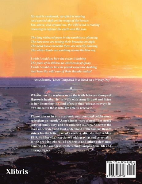 Whether on the seashore or on the trails between clumps of Haworth heather, let us walk with Anne Brontë and listen to her discussing the kind of truth that "always conveys its own moral to those who are able to receive it." Please join us in our academic and personal celebratory reflections on "gentle" Anne's inner "core of steel," her strong sense of family duty, and her enduring courage. Anne was the most underrated and least understood of the famous Brontë sisters for the better part of a century after she died in May 1849. Walking with Anne Brontë adds gravitas and personality to the growing chorus of academic and other voices now honoring the youngest Brontë sibling's inspirational life and literary legacy.