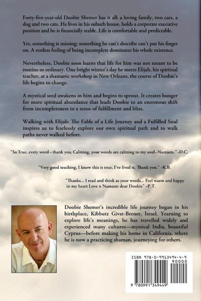 Inspiring Mystical Journey into the World of the Spirits A spiritual journey you can't miss. Order your copy now! Forty-five-year-old Doobie Shemer has it all: a loving family, two cars, a dog and two cats. He lives in his suburb house, holds a corporate executive position and he is financially stable. Life is comfortable and predictable. Yet, something is missing; something he can't describe can't put his finger on. A restless feeling of being incomplete dominates his whole existence. Nevertheless, Doobie soon learns that life for him was not meant to be routine or ordinary. One bright winter's day he meets Elijah, his spiritual teacher, at a shamanic workshop in New Orleans, the course of Doobie's life begins to change. A mystical seed awakens in him and begins to sprout. It creates hunger for more spiritual abundance that leads Doobie to an enormous shift from incompleteness to a sense of fulfillment and bliss. Walking with Elijah: The Fable of a Life Journey and a Fulfilled Soul inspires us to fearlessly explore our own spiritual path and to walk paths never walked before.