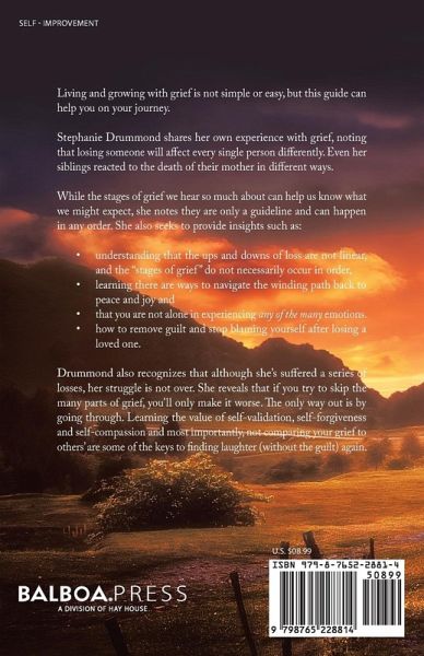 Living and growing with grief is not simple or easy, but this guide can help you on your journey. Stephanie Drummond shares her own experience with grief, noting that losing someone will affect every single person differently. Even her siblings reacted to the death of their mother in different ways. While the stages of grief we hear so much about can help us know what we might expect, she notes they are only a guideline and can happen in any order. She also seeks to provide insights such as: ¿ understanding that the ups and downs of loss are not linear, and the "stages of grief" do not necessarily occur in order, ¿ learning there are ways to navigate the winding path back to peace and joy and ¿ that you are not alone in experiencing any of the many emotions. ¿ how to remove guilt and stop blaming yourself after losing a loved one. Drummond also recognizes that although she's suffered a series of losses, her struggle is not over. She reveals that if you try to skip the many parts of grief, you'll only make it worse. The only way out is by going through. Learning the value of self-validation, self-forgiveness and self-compassion and most importantly, not comparing your grief to others' are some of the keys to finding laughter (without the guilt) again.