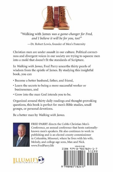 Christian men are under assault in our culture. Political correctness and divergent voices in our society are trying to squeeze men into a mold that doesn't fit the standards of Scripture. In Walking with James, Fred Parry unearths thirty pearls of wisdom from the epistle of James. By studying this insightful book, you can ¿ Become a better husband, father, and friend; ¿ Learn the secrets to being more successful in the workforce, and ¿ Grow into the man God intends you to be. Organized around thirty daily readings and thought-provoking questions, this book is perfect for men's Bible studies, small groups, or personal devotions. Be a better man by Walking with James.