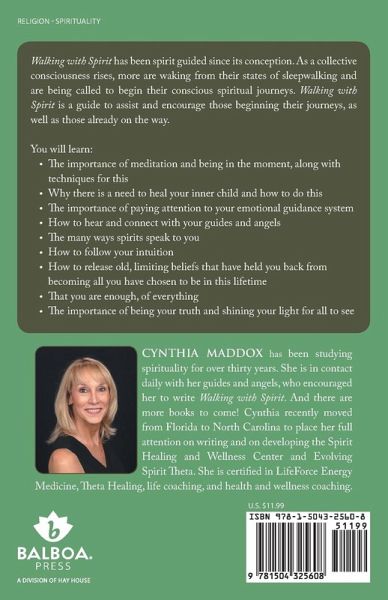 Walking with Spirit has been spirit guided since its conception. As a collective consciousness rises, more are waking from their states of sleepwalking and are being called to begin their conscious spiritual journeys. Walking with Spirit is a guide to assist and encourage those beginning their journeys, as well as those already on the way. You will learn: ¿ The importance of meditation and being in the moment, along with techniques for this ¿ Why there is a need to heal your inner child and how to do this ¿ The importance of paying attention to your emotional guidance system ¿ How to hear and connect with your guides and angels ¿ The many ways spirits speak to you ¿ How to follow your intuition ¿ How to release old, limiting beliefs that have held you back from becoming all you have chosen to be in this lifetime ¿ That you are enough, of everything ¿ The importance of being your truth and shining your light for all to see