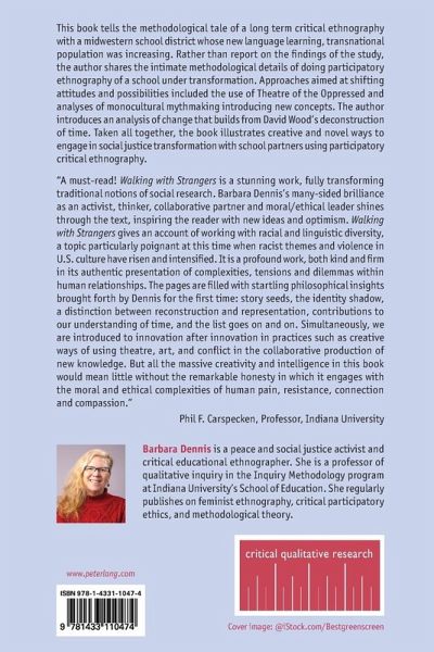 "A must-read! Walking with Strangers is a stunning work, fully transforming traditional notions of social research. Barbara Dennis's many-sided brilliance as an activist, thinker, collaborative partner, and moral/ethical leader shines through the text, inspiring the reader with new ideas and optimism. Walking with Strangers gives an account of working with racial and linguistic diversity, a topic particularly poignant at this time when racist themes and violence in U.S. culture have risen and intensified. It is a profound work, both kind and firm in its authentic presentation of complexities, tensions, and dilemmas within human relationships. The pages are filled with startling philosophical insights brought forth by Dennis for the first time: story seeds, the identity shadow, a distinction between reconstruction and representation, contributions to our understanding of time, and the list goes on and on. Simultaneously, we are introduced to innovation after innovation in practices such as creative ways of using theatre, art, and conflict in the collaborative production of new knowledge. But all the massive creativity and intelligence in this book would mean little without the remarkable honesty in which it engages with the moral and ethical complexities of human pain, resistance, connection, and compassion." -Phil F. Carspecken, Professor, Indiana University