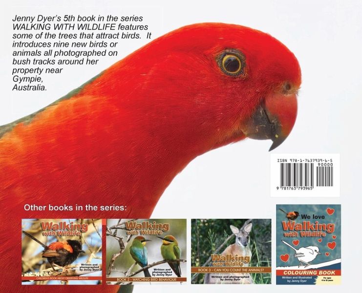 Jenny Dyer lives on a small property outside Gympie. She started her career as a teacher and then moved in a successful desktop publishing and colour printing business, as well as a horse sports photographer even publishing a successful rodeo book called RODEO DOWNUNDER in July 2008.She has now turned her hand to photographing nature and wildlife, mainly birds, on her property when she walks each day, hence the name WALKING WITH WILDLIFE. This has developed into a series introducing new birds, insects and animals in each book designed to educate young children (and some adults) about nature.She recently homeschooled her grandson teaching him photography skills, as well as techniques to get close to birds to photograph them. They photograph the small wildlife like spiders, insects, lizards and snakes as well as animals like koalas and kangaroos and lots of birds.