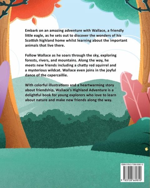 Embark on an amazing adventure with Wallace, a friendly little eagle, as he sets out to discover the wonders of his Scottish highland home whilst learning about the important animals that live there. Follow Wallace as he soars through the sky, exploring forests, rivers, and mountains. Along the way, he meets new friends including a chatty red squirrel and a mysterious wildcat. Wallace even joins in the joyful dance of the capercaillie. With colorful illustrations and a heartwarming story about friendship, Wallace's Highland Adventure is a delightful book for young explorers who love to learn about nature and make new friends along the way.