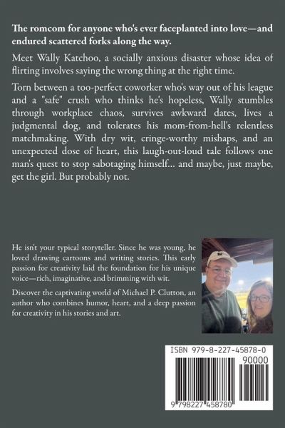 The romcom for anyone who's ever faceplanted into love-and endured scattered forks along the way. Meet Wally Katchoo, a socially anxious disaster whose idea of flirting involves saying the wrong thing at the right time. Torn between a too-perfect coworker who's way out of his league and a "safe" crush who thinks he's hopeless, Wally stumbles through workplace chaos, survives awkward dates, lives a judgmental dog, and tolerates his mom-from-hell's relentless matchmaking. With dry wit, cringe-worthy mishaps, and an unexpected dose of heart, this laugh-out-loud tale follows one man's quest to stop sabotaging himself... and maybe, just maybe, get the girl. But probably not.