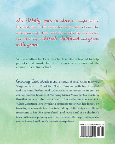 The perfect gift for first-day-of-school jitters-this heartfelt story helps families embrace the big leap into kindergarten with love, comfort, and confidence. As Wally goes to sleep the night before his first day of kindergarten, Mom reflects on the milestone with him, and she sends big wishes for her little boy to cherish childhood and grow with grace. While written for kids, this book is intended to help parents find words for the dramatic and emotional life change of starting school.