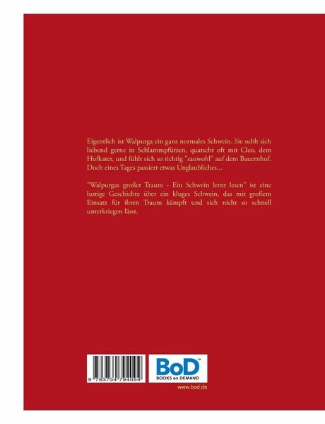 Eigentlich ist Walpurga ein ganz normales Schwein. Sie suhlt sich liebend gerne in Schlammpfützen, quatscht oft mit Cleo, dem Hofkater und fühlt sich so richtig "sauwohl" auf dem Bauernhof. Doch eines Tages passiert etwas Unglaubliches..."Walpurgas großer Traum - Ein Schwein lernt lesen" ist eine lustige Geschichte über ein kluges Schwein, das mit großem Einsatz für ihren Traum kämpft und sich nicht so schnell unterkriegen lässt.