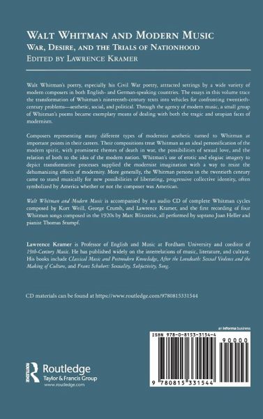 Walt Whitman's poetry, especially his Civil War poetry, attracted settings by a wide variety of modern composers in both English- and German-speaking countries. The essays in this volume trace the transformation of Whitman's nineteenth-century texts into vehicles for confronting twentieth-century problems-aesthetic, social, and political. The contributors pay careful attention to music and poetry alike in examining how the Whitman settings become exemplary means of dealing with both the tragic and utopian faces of modernism. The book is accompanied by a CD recording by Joan Heller and Thomas Stumpf of complete Whitman cycles composed by Kurt Weill, George Crumb, and Lawrence Kramer, and the first recording of four Whitman songs composed in the 1920s by Marc Blitzstein.