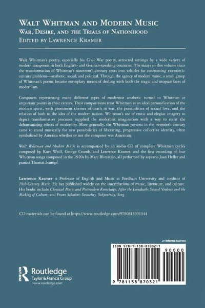 Walt Whitman's poetry, especially his Civil War poetry, attracted settings by a wide variety of modern composers in both English- and German-speaking countries. The essays in this volume trace the transformation of Whitman's nineteenth-century texts into vehicles for confronting twentieth-century problems-aesthetic, social, and political. The contributors pay careful attention to music and poetry alike in examining how the Whitman settings become exemplary means of dealing with both the tragic and utopian faces of modernism. The book is accompanied by a recording by Joan Heller and Thomas Stumpf of complete Whitman cycles composed by Kurt Weill, George Crumb, and Lawrence Kramer, and the first recording of four Whitman songs composed in the 1920s by Marc Blitzstein.