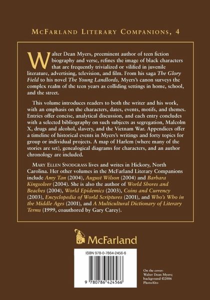 Walter Dean Myers, preeminent author of teen fiction biography and verse, refines the image of black characters that are frequently trivialized or vilified in juvenile literature, advertising, television, and film. From his saga The Glory Field to his novel The Young Landlords, Myers's canon surveys the complex realm of the teen years as colliding settings in home, school, and the street. This volume introduces readers to both the writer and his work, with an emphasis on the characters, dates, events, motifs, and themes from the books. Myers's 101 A-to-Z entries offer concise, analytical discussion on all topics and include generous citations from primary and secondary sources. Each entry concludes with a selected bibliography on such subjects as segregation, Malcolm X, urbanism, writing, metafiction, drugs and alcohol, slavery, and the Vietnam War. Appendices offer a timeline of historical events in Myers's writings and forty topics for group or individual projects, oral analysis, background material, and theme development. A map of Harlem (where many of the stories are set), genealogical diagrams for characters, and an author chronology contribute to a comprehensive presentation.
