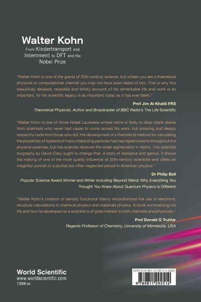 Walter Kohn, 1998 Nobel Laureate in Chemistry and discoverer of the Density Functional Theory (DFT), died in 2016 at the grand age of 93. This book is the first ever biography of Kohn, who led a remarkable life and scientific career, not least the fact that his DFT theory has emerged as the underlying computational method for molecular simulation used throughout the physical and life sciences. Taking us on a compelling journey, Sir David Clary traces Kohn's early life in Vienna and his dramatic escape from the Nazis on the Kindertransport to England in 1939, followed by Kohn's internment as an "enemy alien" and his transportation to Canada in 1940. His subsequent scientific career is discussed in detail, including his remarkable sabbatical in France when he discovered DFT, and his enduring efforts on peace initiatives and reduction of nuclear proliferation. An extraordinary story of a theoretical physicist winning the Nobel Prize in Chemistry, Walter Kohn is a sparkling chronicle of one of the great scientists of the 20th century who forever changed the way contemporary science is done.
