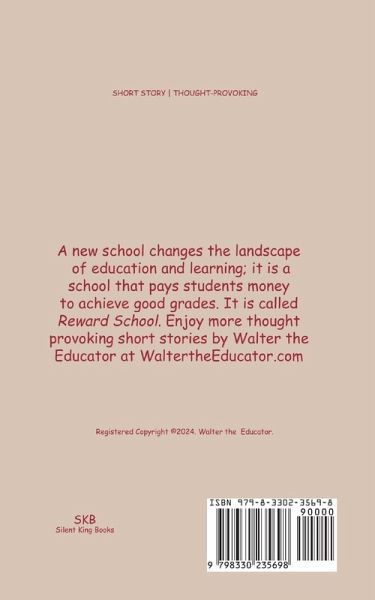 Add this collectible shorty story to your collection. A new school changes the landscape of education and learning; it is a school that pays students money to achieve good grades. It is called Reward School. Enjoy more thought provoking short stories by Walter the Educator at WaltertheEducator.com.