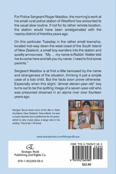 For Police Sergeant Roger Maddox, the morning's work at his small rural police station of Westford has amounted to the usual slow routine. If not for its rather remote location, the station would have been amalgamated with the nearby district of Hokitika years ago. On this particular Tuesday in the rather small township, located mid-way down the west coast of the South Island of New Zealand, a small boy wanders into the station and quietly announces: "My … my name is Rabbit. Walter told me to come here and tell you my name. I need to find some parents." Sergeant Maddox is at first a little bemused by the name and strangeness of the situation, thinking it just a simple case of a lost child. But the facts soon prove otherwise. Especially when this slight, 'almost eleven-year-old" boy turns out to be the spitting image of a seven-year-old who was presumed drowned in an alpine river over fourteen years ago. (About the Author) Morgan Bruce lived most of his life in West Auckland, New Zealand. Now retired, he was a music teacher and a performer for 44 years, which is why music plays a large role in his writing. This is his 11th book.