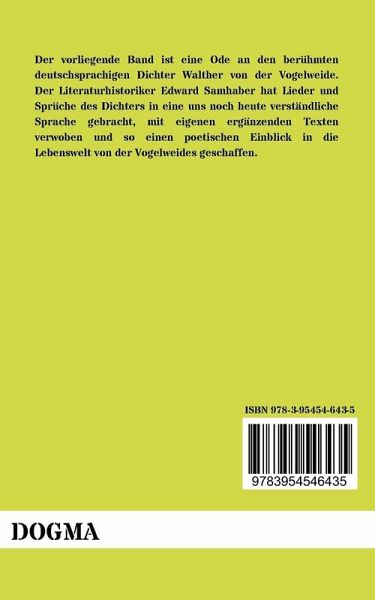 Der vorliegende Band ist eine Ode an den berühmten deutschsprachigen Dichter Walther von der Vogelweide. Der Literaturhistoriker Edward Samhaber hat Lieder und Sprüche des Dichters in eine uns noch heute verständliche Sprache gebracht, mit eigenen ergänzenden Texten verwoben und so einen poetischen Einblick in die Lebenswelt von der Vogelweides geschaffen.