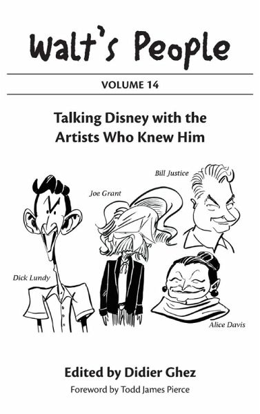 Walt's People: Volume 14: Talking Disney with the Artists Who Knew Him Disney History from the Source The Walt's People series is an oral history of all things Disney, as told by the artists, animators, designers, engineers, and executives who made it happen, from the 1920s through the present. Walt's People: Volume 14 features appearances by Carman Maxwell, Dick Lundy, Phil Klein, Zach Schwartz, Ray Patterson, Marge Champion, Joe Grant, Bob Jones, Bob Baker, Bill Justice, Irvin Graham, Lillian Disney, Carson Van Osten, Bruce Bushman, Bob Mattey, Chris Mueller Jr., Arthur J. Vitarelli, Alice Davis, Lucile Bosché, Admiral Joe Fowler, and Eddie Sotto, plus articles by Vincent Randle and David Culbert, and the Holling C. Holling letters. Among the hundreds of stories in this volume: MARGE CHAMPION remembers what it was like to dance and model as the live-action reference for Snow White. ALICE DAVIS reveals the trials and tribulations of designing clothes for the pirates - and the Redhead - in Pirates of the Caribbean. BOB MATTEY explains how he built the animals for the Jungle Cruise, and the many things that went wrong. ADMIRAL JOE FOWLER talks about facing down gunboats in 1920s China and buying up land for Walt in Florida. EDDIE SOTTO describes fascinating attractions never built, including piranha pits, a new Jungle Cruise based on Apocalypse Now, and an encounter with Maleficent in the Dragon's Lair. The entertaining, informative stories in every volume of Walt's People will please both Disney scholars and eager fans alike.
