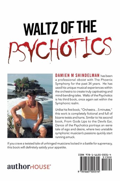 Waltz of the Psychotics deals with the power struggle between two unhinged symphonic musicians. Amarah Zarcy is a fledgling violist in the Baton Rouge Symphony. The principal of her section, Reba Kane takes an immediate disliking to homely and timid new musician. As Reba plots to remove her nemesis from the ensemble, Amarah fights back in the only way she can. With the help of her twin sister, Celeste, Amarah cleverly deceives everyone around her to keep her coveted orchestra job. This epic battle of wills quickly escalates out of control, to the point of no return. As both Amarah and Reba's realities slowly fade away, all-consuming insanity rapidly takes over, much to the demise of all who become involved with the pair. Waltz of the Psychotics dances into the murky and turbid recesses of the demented and brainsick mind. I promise, once you start reading this book, you will not want to put it down.