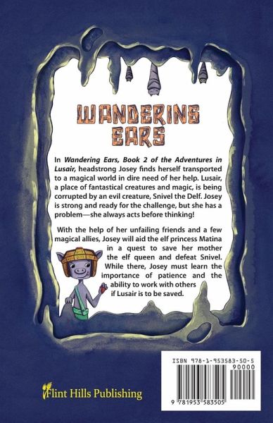 In Wandering Ears, Book 2 of the Adventures in Lusair, headstrong Josey finds herself transported to a magical world in dire need of her help. Lusair, a place of fantastical creatures and magic, is being corrupted by an evil creature, Snivel the Delf. Josey is strong and ready for the challenge, but she has a problem-she always acts before thinking! With the help of her unfailing friends and a few magical allies, Josey will aid the elf princess Matina in a quest to save her mother the elf queen and defeat Snivel. While there, Josey must learn the importance of patience and the ability to work with others if Lusair is to be saved.