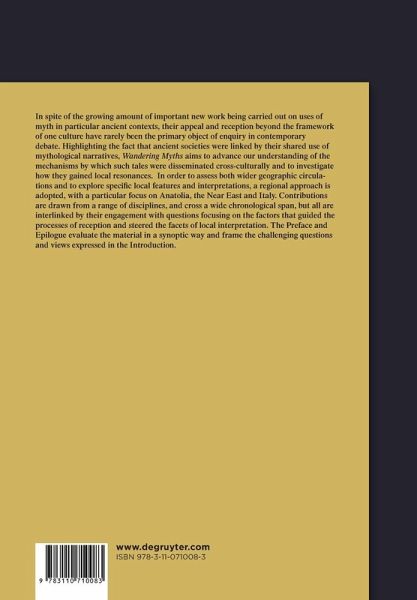In spite of the growing amount of important new work being carried out on uses of myth in particular ancient contexts, their appeal and reception beyond the framework of one culture have rarely been the primary object of enquiry in contemporary debate. Highlighting the fact that ancient societies were linked by their shared use of mythological narratives, Wandering Myths aims to advance our understanding of the mechanisms by which such tales were disseminated cross-culturally and to investigate how they gained local resonances. In order to assess both wider geographic circulations and to explore specific local features and interpretations, a regional approach is adopted, with a particular focus on Anatolia, the Near East and Italy. Contributions are drawn from a range of disciplines, and cross a wide chronological span, but all are interlinked by their engagement with questions focusing on the factors that guided the processes of reception and steered the facets of local interpretation. The Preface and Epilogue evaluate the material in a synoptic way and frame the challenging questions and views expressed in the Introduction.