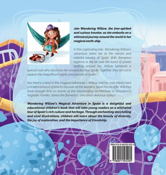 Come along with Willow in her adventures! Wandering Willow is a free-spirited, curious traveler, exploring the world in her magical earth-ship. With each adventure, she dances her way around while learning about different cultures. When Willow arrives in Spain, she befriends a special crab who makes a wonderful tour guide. But will they have enough time to learn and see lots of the magical sights around Spain? Come along and find out!