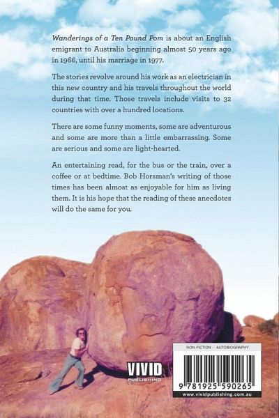 Wanderings of a Ten Pound Pom is about an English emigrant to Australia beginning almost 50 years ago in 1966, until his marriage in 1977. The stories revolve around his work as an electrician in this new country and his travels throughout the world during that time. Those travels include visits to 32 countries with over a hundred locations. There are some funny moments, some are adventurous and some are more than a little embarrassing. Some are serious and some are light-hearted. An entertaining read, for the bus or the train, over a coffee or at bedtime. Bob Horsman's writing of those times has been almost as enjoyable for him as living them. It is his hope that the reading of these anecdotes will do the same for you.