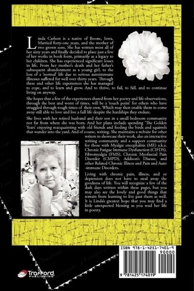 This book is born from the complexities of life. Unorthodox poetry, brief anecdotes and life observations, quotes, written in a form that is this author's own unique style. Each portraying the roads traveled through the many hardships, as well as joys encountered, in one simple and ordinary life. After having been dealt a blow from the diagnosis of chronic auto-immune illness after only ten years into her marriage, Linda recounts the simple things of life that can be considered blessings. And reveals the ongoing struggle with depression, pain, and illness, that have spanned over thirty years of trying to live normally despite them. Being alone in life at age fifteen was preparation for the physical battles that lay ahead. The feelings of isolation, loneliness and of 'being out of place' most all of her life, helped build the mental stamina to endure the illnesses that were to come later on. Through it all, she's kept the optimistic view that life still mattered. These compiled works, some from the time she was very young, through today, encompass the multitude of emotions experienced in a sometimes difficult life, and will hopefully serve as an encouragement to others who struggle.