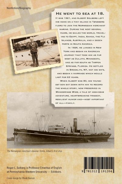 This book is a biography of my father, Albert Solberg (1903-1996). He was born in Norway, joined the Norwegian merchant marine at eighteen, and came to the United States in 1924. He endured personal tragedy and a half-dozen brushes with death, but also had some amazing experiences in places like India, Samoa, and South America. Later, he worked as a yacht crewman on the Great Lakes. After settling in New York City, he married in 1933. He and his wife of 63 years raised six children, and he lived to the age of 92. This is a story about adventure, hard work, and family--how an immigrant carved out a piece of the American Dream. All readers have known someone like Albert, who came to America with nothing and created a good life in a new land.