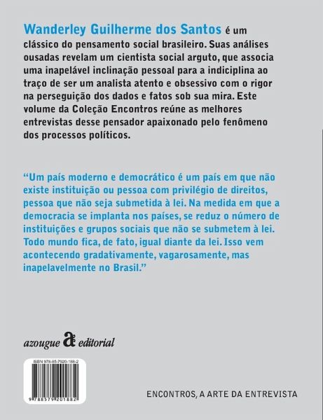 Encontros (Meetings) is the largest and most prestigious book collection of interviews with Brazilian artists and thinkers. With more than 50 published titles, Encontros provides a broad panorama of Brazil's cultural and intellectual wealth. Wanderley Guilherme dos Santos is a classic of Brazilian social thought. His daring analyses reveal a shrewd social scientist, who associates an unappealing personal inclination for to the trait of being an attentive analyst obsessed with rigor in the pursuit of the data and facts in his sights. This volume of the Encontros Collection gathers the best interviews of this passionate thinker about the phenomenon of political processes.