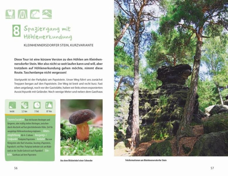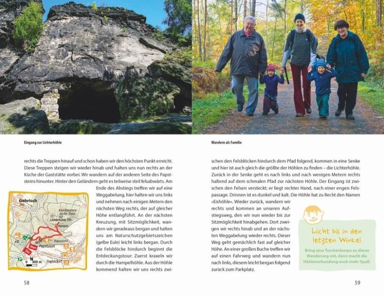 Höhlen, Felslabyrinthe und mittelalterliche Burganlagen - es ist erstaunlich, wie weit Kinderfüße tragen, wenn es Spannendes zu erkunden gibt. Wo es erlebnisreiche Touren im Elbsandsteingebirge gibt, das verraten wir in diesem Buch. Auf 34 Wanderungen entdecken wir die Sandsteingipfel, Tafelberge, Schluchten, Tiere und Pflanzen der Nationalparkregion. Die Festung Königstein, die Bastei-Brücke und die Kirnitzschtalbahn warten nur auf einen Besuch.