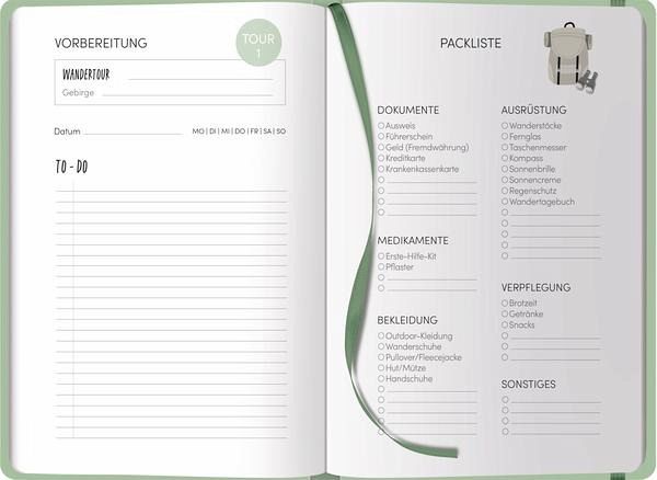 ·Tagebuch Format 13,0 x 19,0 cm·160 Seiten ·100 g umweltfreundliches FSC Papier·Nachhaltig mit veganen Materialien produziert ·In edler Leinenstruktur ·Das Eintragbuch für 19 Touren, zum Ausfüllen ·mit Lesebändchen und Gummiband Unser Wandertagebuch ist perfekt um die schönsten Momente einer Wandertour, geheime Einkehrmöglichkeiten, Hütten, Höhenmeter und Länge der Wanderung festzuhalten. Das Reisetagebuch für die Berge, auch für Familien die gerne Wanderausflüge unternehmen super geeignet. Mit Vorbereitungsliste und viel Platz für Skizzen.