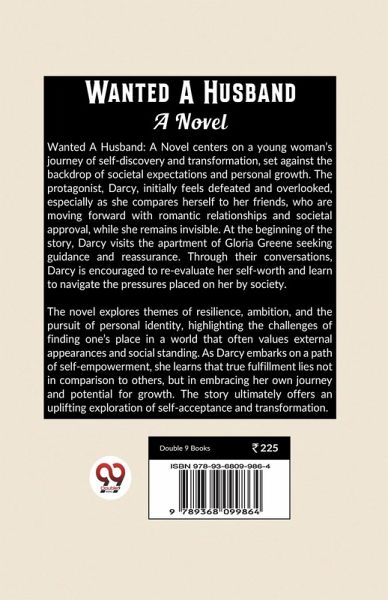 Wanted A Husband: A Novel centers on a young woman's journey of self-discovery and transformation, set against the backdrop of societal expectations and personal growth. The protagonist, Darcy, initially feels defeated and overlooked, especially as she compares herself to her friends, who are moving forward with romantic relationships and societal approval, while she remains invisible. At the beginning of the story, Darcy visits the apartment of Gloria Greene seeking guidance and reassurance. Through their conversations, Darcy is encouraged to re-evaluate her self-worth and learn to navigate the pressures placed on her by society. The novel explores themes of resilience, ambition, and the pursuit of personal identity, highlighting the challenges of finding one's place in a world that often values external appearances and social standing. As Darcy embarks on a path of self-empowerment, she learns that true fulfillment lies not in comparison to others, but in embracing her own journey and potential for growth. The story ultimately offers an uplifting exploration of self-acceptance and transformation.