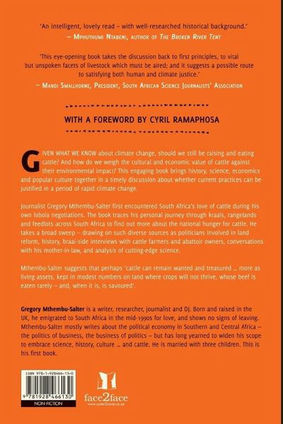 Given what we know about climate change, should we still be raising and eating cattle? And how do we weigh the cultural and economic value of cattle against their environmental impact? This engaging book brings history, science, economics and popular culture together in a timely discussion about whether current practices can be justified in a period of rapid climate change. Journalist Gregory Mthembu-Salter first encountered South Africa's love of cattle during his own lobola negotiations. The book traces his personal journey through kraals, rangelands and feedlots across South Africa to find out more about the national hunger for cattle. He takes a broad sweep - drawing on such diverse sources as politicians involved in land reform, history, braai-side interviews with cattle farmers and abattoir owners, conversations with his mother-in-law, and analysis of cutting-edge science.