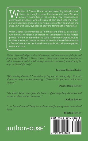 Wanted: A Forever Home is a heart-warming tale where we share the thoughts, fears, loneliness, and joy of Senora, a toffee-nosed house cat, and ten very individual and determined street cats whose lives are all torn apart until they meet up with Gentleman George, a Portuguese mountain dog whose one mission in life has always been to obey the commands of his master. When George is commanded to find the scent of Bella, a street cat whom he has never seen, and return her to her forever home, his task proves far more complex than he could have ever imagined. But his troubles are only just beginning when he later finds himself shepherding a flock of cats across the Spanish countryside with all its unexpected twists and turns.
