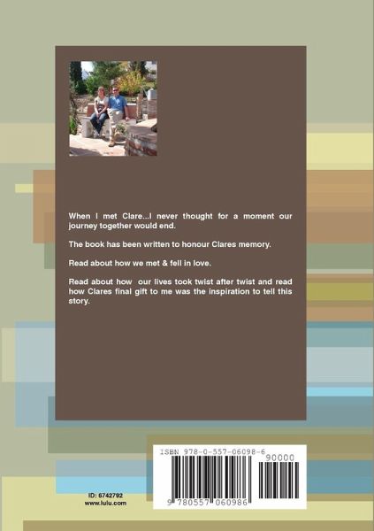 This is the story of the ten years I spent with a wonderful woman. Through life, love, illness, happy times and sad. I have never professed to be writer let alone a good writer, in fact I'm not even a great reader, but this was Clare's idea, so I am duty bound to complete this for her. So if the spelling and grammar is a bit off...sorry, but it was written in 8 days, writing 8 hours a day
