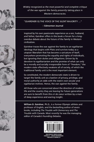 THE GROUNDBREAKING BESTSELLER, is back in print! Widely recognized as the most powerful and complete critique of the war against the family presently taking place in Western democracies. Inspired by his own passionate experience as a son, husband, and father, Gairdner offers in this book a forum for a long-overdue debate about the future of the family in Western civilization. Gairdner traces the war against the family to an egalitarian ideology that begins with Plato and survives today as a utopian liberalism that has become a caricature of itself, everywhere promoting the equality and rights of individuals, but ignoring their duties and obligations. Driven by its devotion to egalitarianism and the promise of what can only be a morally and socially irresponsible form of "freedom," the modern state effectively weakens all of society, of which the traditional the family unit is the most important element. So constituted, the modern democratic state is driven to target the family unit as a bastion of privacy, privilege, and moral authority at odds with the state's own secular and egalitarian motives. Hence, the war against the family. All those who are concerned about the direction of modern life and the country they are leaving for future generations are sure to benefit from this cri de coeur written by a man of deep experience and searing insight.