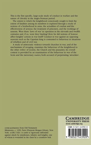 This is the first large-scale study of conduct in warfare and the nature of chivalry in the Anglo-Norman period. The extent to which the knighthood consciously sought to limit the extent of fatalities among its members is explored through a study of notions of a 'brotherhood in arms', the actualities of combat and the effectiveness of armour, the treatment of prisoners, and the workings of ransom. Were there 'laws of war' in operation in the eleventh and twelfth centuries and, if so, were they binding? How far did notions of honour affect knights' actions in war itself? Conduct in war against an opposing suzerain such as the Capetian king is contrasted to behaviour in situations of rebellion and of civil war. An overall context is provided by an examination of the behaviour in war of the Scots and the mercenary routiers, both accused of perpetrating 'atrocities'.