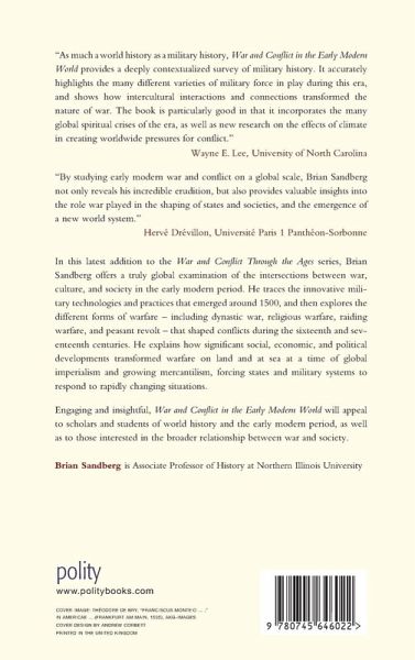 In this latest addition to the War & Conflict Through the Ages series, Brian Sandberg offers a truly global examination of the intersections between war, culture, and society in the early modern period. He traces the innovative military technologies and practices that emerged around 1500, exploring the different forms of warfare including dynastic war, religious warfare, raiding warfare, and peasant revolt that shaped conflicts during the sixteenth and seventeenth centuries. He explains how significant social, economic, and political developments transformed warfare on land and at sea at a time of global imperialism and growing mercantilism, forcing states and military systems to respond to rapidly changing situations.