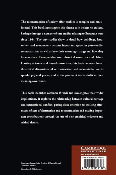 The reconstruction of society after conflict is complex and multifaceted. This book investigates this theme as it relates to cultural heritage through a number of case studies relating to European wars since 1864. The case studies show in detail how buildings, landscapes, and monuments become important agents in post-conflict reconstruction, as well as how their meanings change and how they become sites of competition over historical narratives and claims. Looking at iconic and lesser-known sites, this book connects broad theoretical discussions of reconstruction and memorialisation to specific physical places, and in the process it traces shifts in their meanings over time. This book identifies common threads and investigates their wider implications. It explores the relationship between cultural heritage and international conflict, paying close attention to the long aftermaths of acts of destruction and reconstruction and making important contributions through the use of new empirical evidence and critical theory.