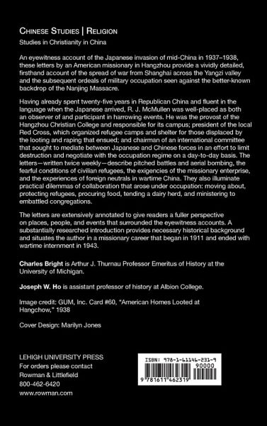 This collection of letters provides a detailed eyewitness account of the Japanese conquest and occupation of central China in 1937–1938, as seen from Hangzhou by a Protestant missionary. As an American neutral, the author offers unique perspectives on the dilemmas of faith and partisanship, that the Sino-Japanese conflict posed.