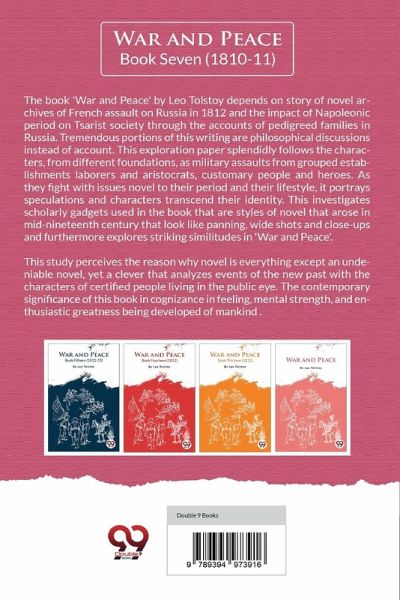 The book 'War and Peace' by Leo Tolstoy depends on story of novel archives of French assault on Russia in 1812 and the impact of Napoleonic period on Tsarist society through the accounts of pedigreed families in Russia.Tremendous portions of this writing are philosophical discussions instead of account. This exploration paper splendidly follows the characters, from different foundations, as military assaults from grouped establishments laborers and aristocrats, customary people and heroes. As they fight with issues novel to their period and their lifestyle, it portrays speculations and characters transcend their identity. This investigates scholarly gadgets used in the book that are styles of novel that arose in mid-nineteenth century that look like panning, wide shots and close-ups and furthermore explores striking similitudes in 'War and Peace'. This study perceives the reason why novel is everything except an undeniable novel, yet a clever that analyzes events of the new past with the characters of certified people living in the public eye. The contemporary significance of this book in cognizance in feeling, mental strength, and enthusiastic greatness being developed of mankind .
