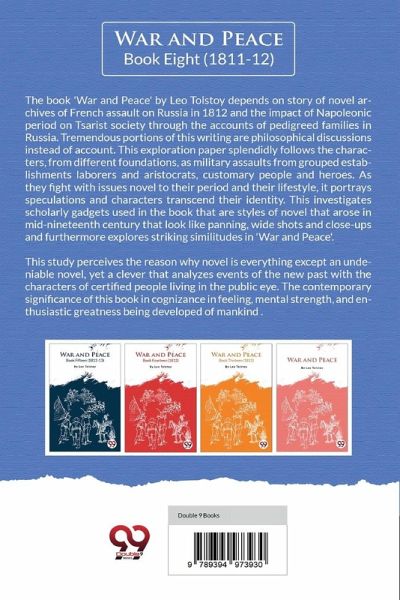 The book 'War and Peace' by Leo Tolstoy depends on story of novel archives of French assault on Russia in 1812 and the impact of Napoleonic period on Tsarist society through the accounts of pedigreed families in Russia.Tremendous portions of this writing are philosophical discussions instead of account. This exploration paper splendidly follows the characters, from different foundations, as military assaults from grouped establishments laborers and aristocrats, customary people and heroes. As they fight with issues novel to their period and their lifestyle, it portrays speculations and…mehr